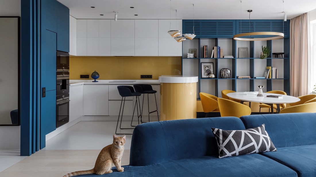 Яркие оттенки отлично работают в деталях, но могут быть и основой интерьера.