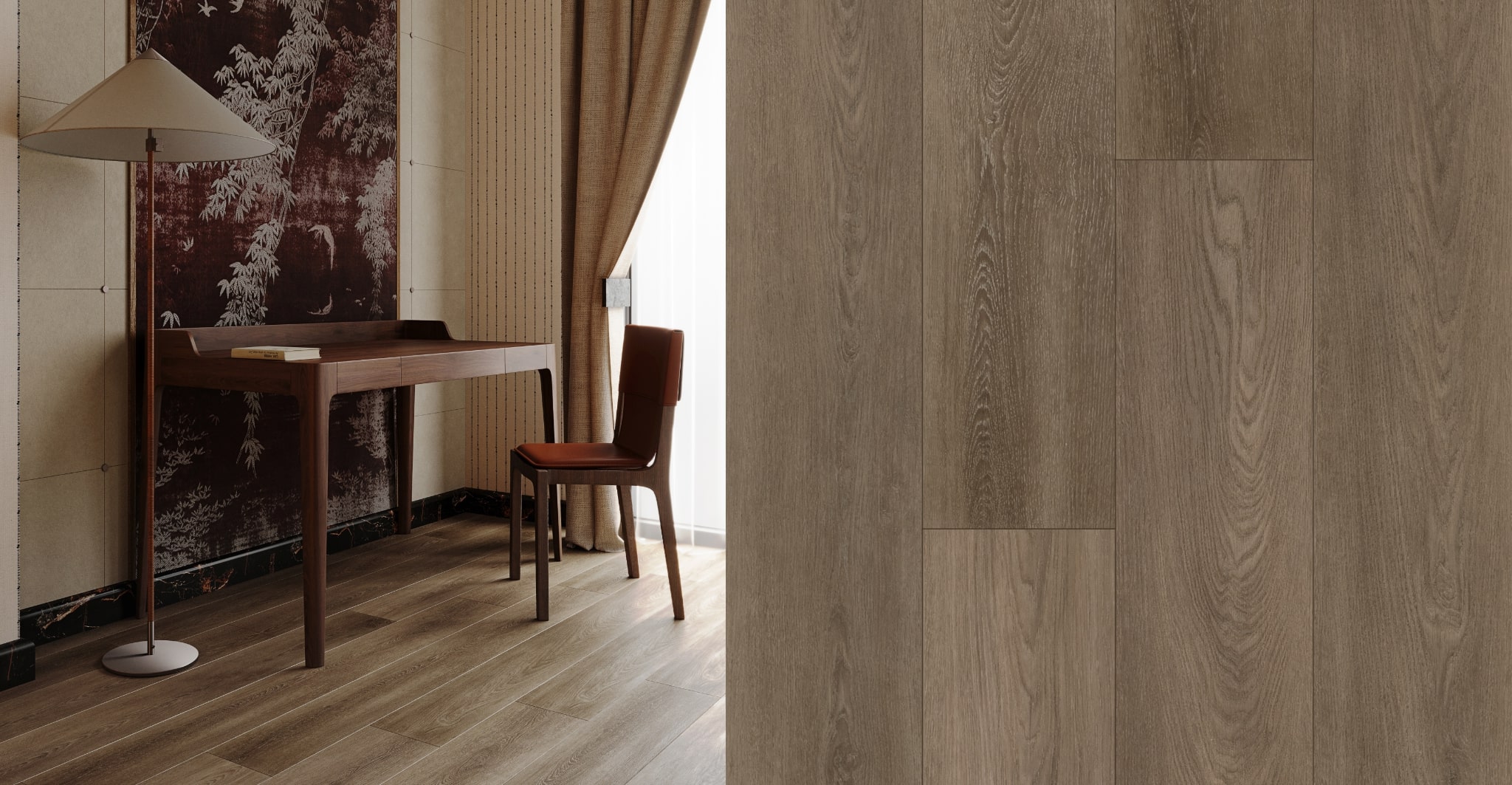 Кварцевый ламинат с фаской, уложенный палубой, — пол с еле ощутимым, но таким значимым акцентом. Это акцент, который не будет перебивать общий дух интерьера. Фаска призвана усилить общий стиль и подарить тот самый благородный уют, который так хочется ощущать у себя дома.